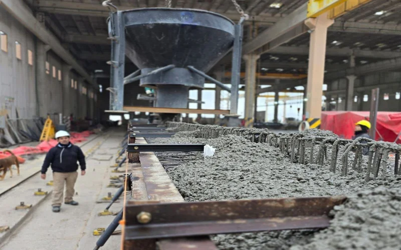El ingeniero jefe Federico Ávalos explicó que el proceso de fabricación comienza sobre pistas de 130 metros, que permiten armar cuatro vigas en serie. “Primero se coloca la armadura pasiva, luego los 42 cables de pretensado y se procede al tesado individual de cada uno. Este paso lleva un día completo”, señaló.
