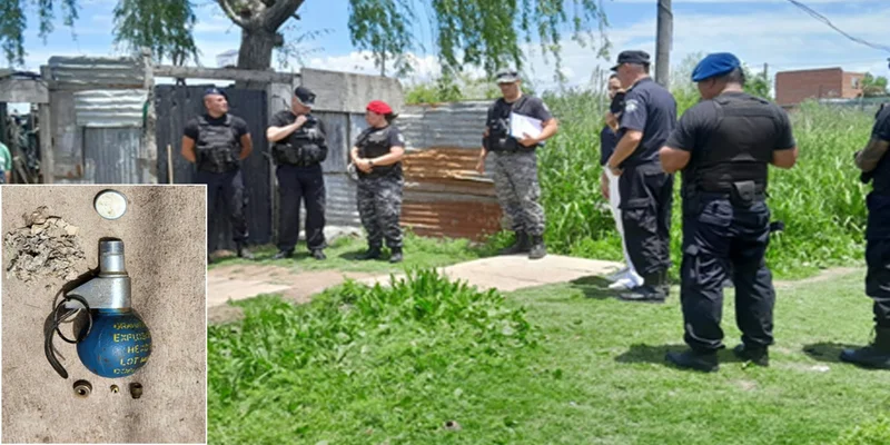 El primero de los casos tiene como escenario, una vivienda de España y 5 de Agosto, donde la Policía se encontraba realizando tareas de saturación. Al llegar a la parte externa de una vivienda precaria visualizan armamento, municiones y una granada. Los efectivos activan el protocolo correspondiente, logrando identificar el artefacto. La misma era una granada de mano FMK8, con anilla, chaveta de extracción, palanca de seguridad y tapón roscado.