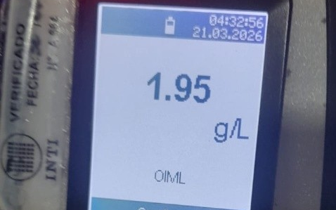 Al momento de la identificación, los efectivos constataron que el hombre presentaba evidentes signos de intoxicación alcohólica. Tras realizarle el test correspondiente, el resultado marcó casi 2 gramos de alcohol en sangre, un valor que cuadruplica el límite máximo permitido para conductores particulares en la provincia de Santa Fe.