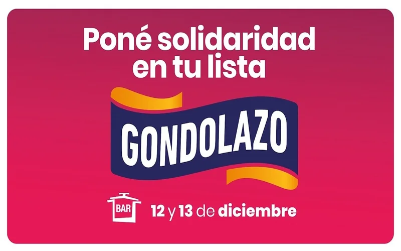 El viernes 12 y sábado 13 de diciembre, más de 70 supermercados de la región se unen al Gondolazo. Se unen supermercados de Rosario, Funes, San Lorenzo y Villa Gobernador Gálvez. Estos recibirán a miles de vecinos que, entre sus compras habituales, podrán donar alimentos no perecederos. Allí, más de 1.000 voluntarios estarán acompañando la acción de BAR, recibiendo donaciones.