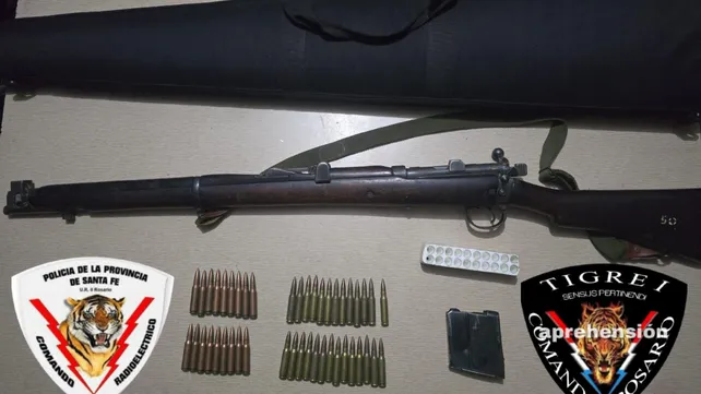 Los policías encontraron al pie de una cama una funda en la que había un fusil Mauser calibre 762, y en el mismo ambiente de la casa encontraron una pistola y un revólver.