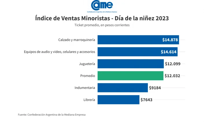 El Índice de Ventas Minoristas del Día de la Niñez arrojó que el ticket de ventas promedió los $12.032 y “los comercios relevados marcaron como característica que la gente se orientó a productos económicos”, remarcaron desde CAME.