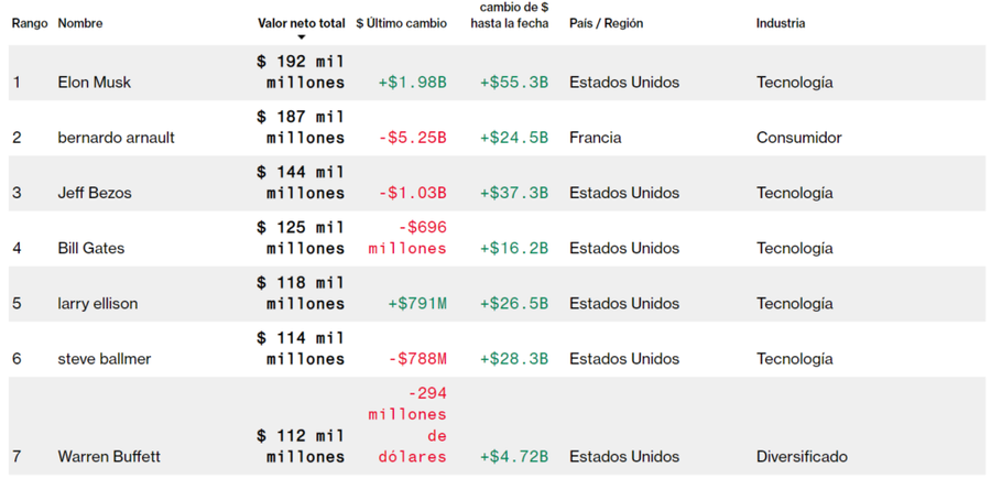 Su patrimonio neto es ahora de $192 mil millones, en comparación con los $187 mil millones de Bernard Arnault. Ambos son centibillonarios, lo que significa que tienen una fortuna de más de $100 mil millones. Es importante destacar que ambas cifras son muy cercanas, por lo que hay variaciones en el primer lugar. La riqueza de Arnault cayó notablemente después de una caída en las acciones de LVMH el 31 de mayo de 2023, según Bloomberg.