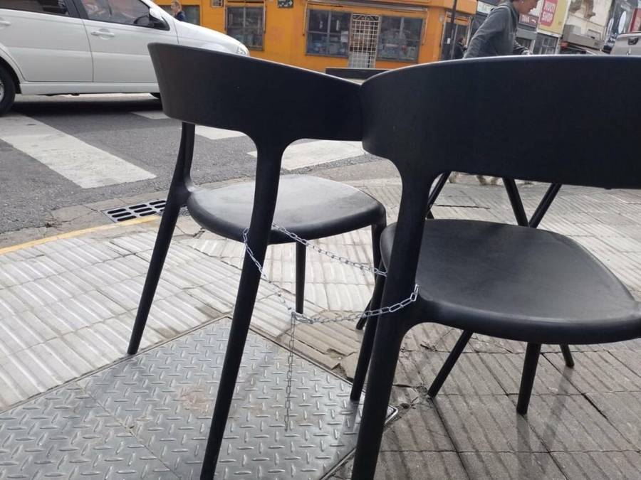 Ese fue el caso de una heladería ubicada por calle Mendonza y San Martín. Los empleados contaron que les robaban las sillas de la vereda y se las llevaban caminando, ante ellos decidieron encadenarlas a las mesas.