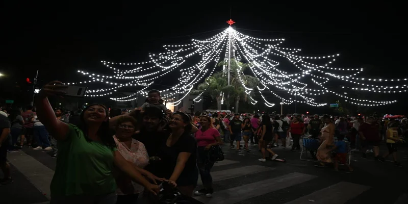 El árbol del parque tiene tres mil luminarias LED, se destaca por su potencia lúminica, una estructura de 24 metros de ancho por 15 de alto que se extiende hasta las veredas, sin dificultar el paso de lo vehículos.