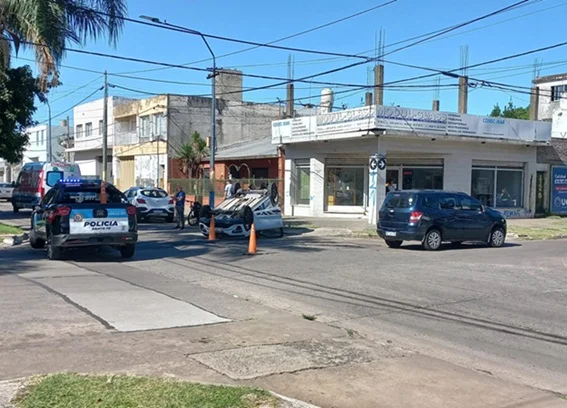 En horas de la mañana de este martes se registró un fuerte choque y vuelco en la intersección de España y Gaboto. Afortunadamente no hubo heridos.