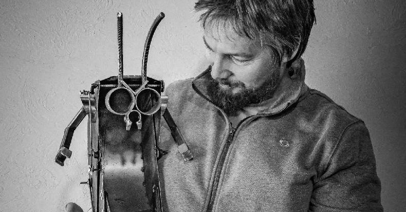 Guillermo Galetti es conocido popularmente como “El ladrón de chatarra”, el seudónimo que utiliza en sus perfiles de redes sociales. Es docente de Educación Física y trabaja con chicos y adolescentes de entre 6 y 20 años en diferentes instituciones educativas. Sin embargo, también se dedica al arte. Con su creatividad, sin utilizar electricidad, construye “caricaturas biomecánicas”, que cobran vida mediante la intervención de las personas, ya que requieren movimiento manual.