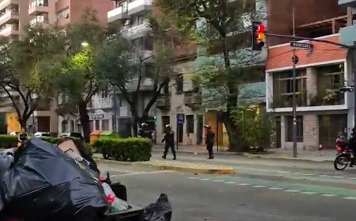 En redes sociales comenzaron a circular videos en los que se observan columnas de humo, corridas y disparos de postas de goma, así como frentes de edificios con vidrios rotos y escombros sobre la vereda.