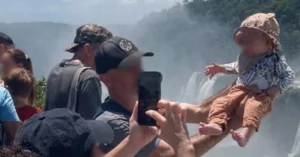 Indignación en Iguazú: sostuvieron a un bebé al vacío para una foto