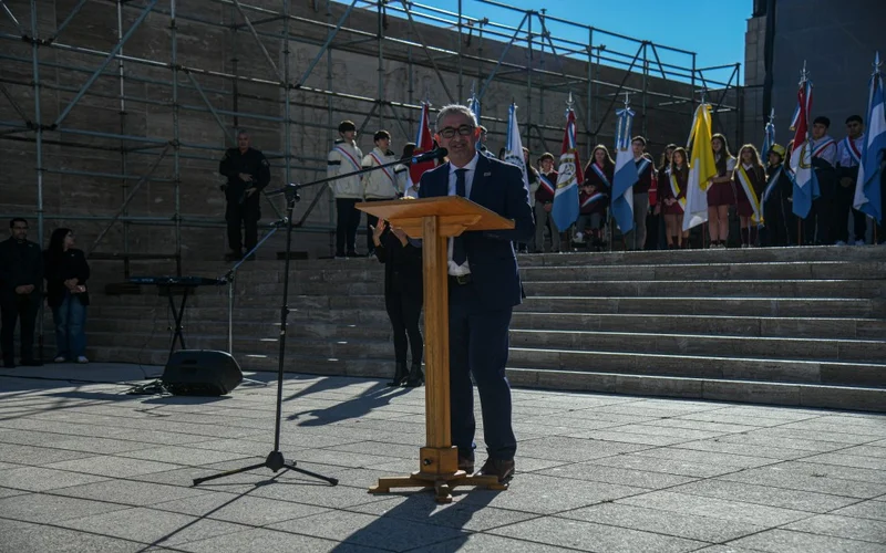 El intendente Pablo Javkin encabezó este martes el acto por el Tricentenario de Rosario en el Monumento a la Bandera.
