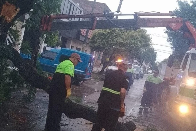 Hasta las 6 de hoy sábado, el relevamiento total acumulado desde el viernes registró 34 casos vinculados al arbolado, entre ellos un vehículo afectado por la caída de una rama de gran porte; además, se reportaron 19 incidentes con cables y columnas, dos hundimientos de calzada y un desprendimiento de mampostería.