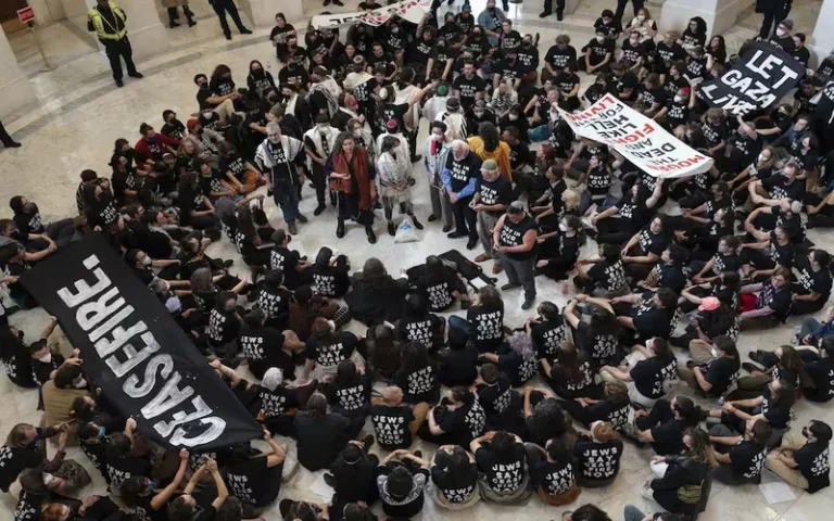 Manifestantes propalestinos protestan dentro del Capitolio de EE.UU