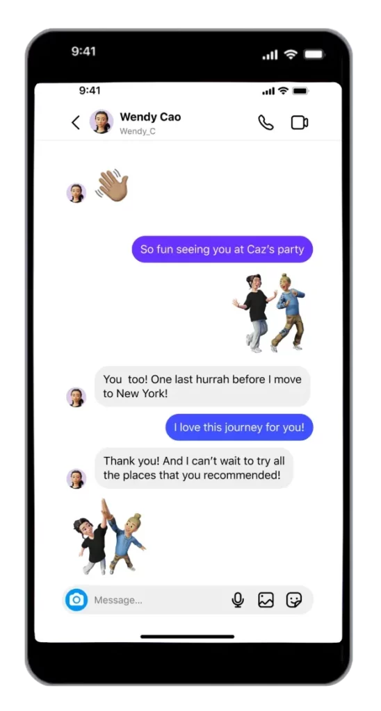 - Stickers animados para avatares: En Instagram, Facebook y Messenger, se han introducido stickers animados para avatares. Estos stickers te permiten darle un pulgar hacia arriba o aplaudir una frase ingeniosa utilizando tu avatar animado en Stories, Reels, comentarios de Facebook. Y en los hilos de mensajes 1:1 en Messenger e Instagram.