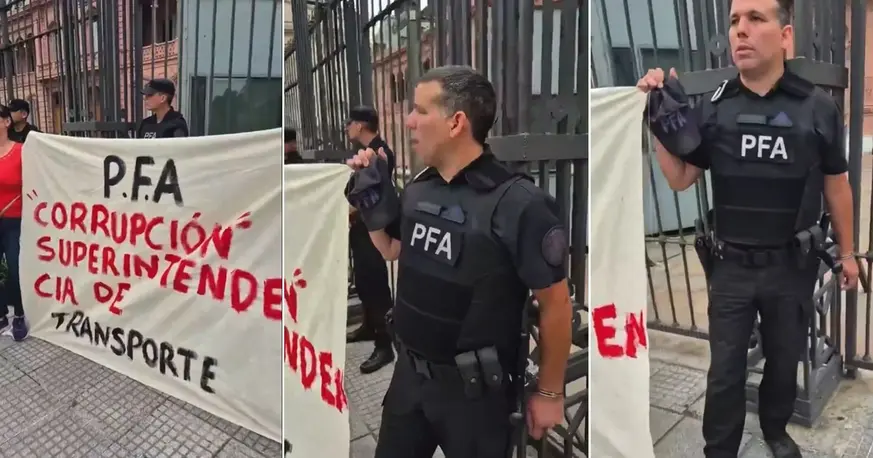 Un efectivo de la Policía Federal protagonizó una protesta inusual frente a Casa Rosada: decidió esposarse a las rejas del histórico edificio para visibilizar su malestar por las condiciones laborales y salariales dentro de la fuerza.