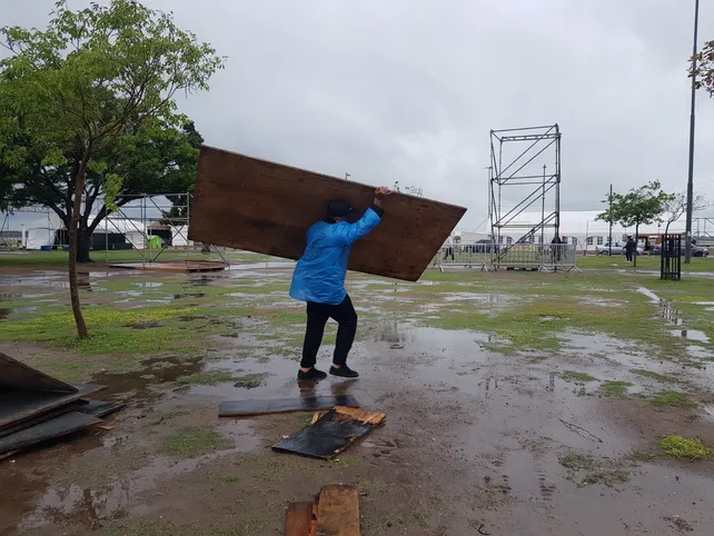 Si bien las previsiones meteorológicas indican que por la noche ya no se producirán lluvias, la ciudad registró abundante caída de agua en las últimas horas, lo que genera inconvenientes en el estado del suelo del predio del Parque Nacional a la Bandera, donde se desarrolla el evento.
