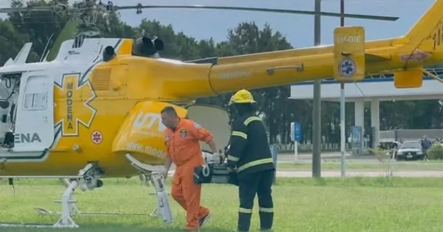 Por la complejidad del cuadro y la zona donde se produjo el siniestro, se dispuso el traslado en helicóptero sanitario hacia el Hospital de Emergencias Clemente Álvarez (Heca), en Rosario, centro de referencia para este tipo de casos de alta complejidad traumatológica.