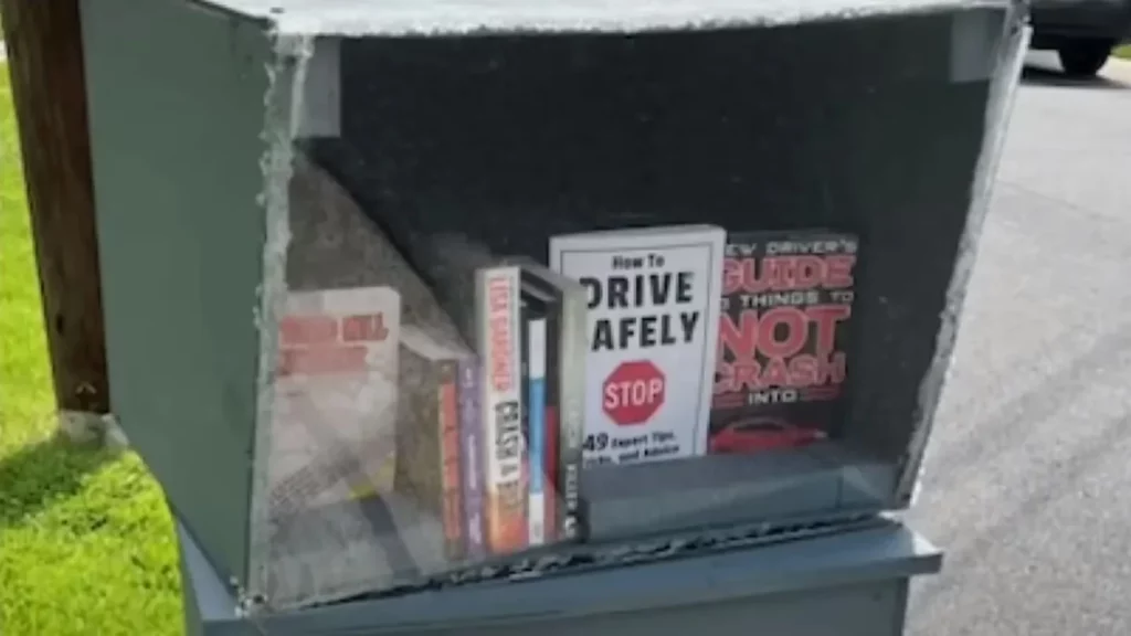 El radar falso estaba hecho de madera contrachapada y plexiglás, y estaba cubierto con una pintura gris oscura similar a la de los radares legales; los libros formaron parte de una biblioteca gratuita colocada en la mitad de la calle.
