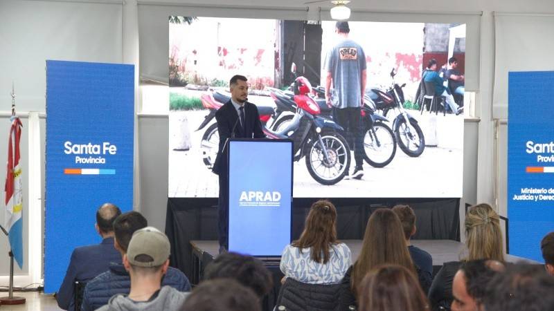 El evento se llevó a cabo en el auditorio del Colegio de Martilleros de la ciudad de Rosario, con la presencia del secretario de Justicia, Eduardo Massot, y el titular de Aprad, Juan Facundo Besson.