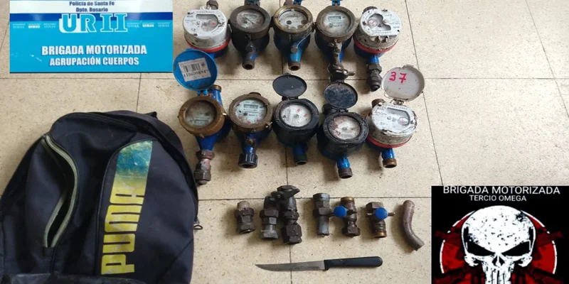 En momentos que personal policial se encontraban patrullando por Avellaneda al 2200, identificaron a un hombre de 31 años, el cual llevaba una mochila, conteniendo un cuchillo, 10 medidores de agua, 3 lleves de paso y cuatro roscas de bronce.