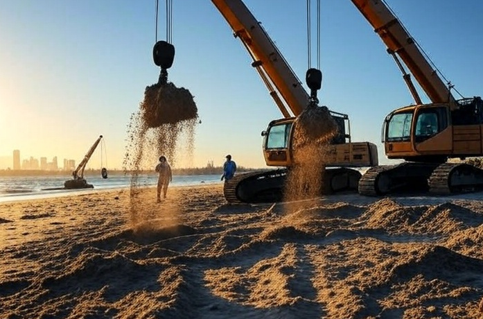 Según lo previsto, llegarán 50 barcos con material, que en total sumarán unos cinco mil metros cúbicos. El objetivo es nivelar y mejorar el terreno.