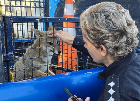 Al lugar acudió una brigada especializada de la Policía Ecológica, que desplegó un protocolo de actuación para este tipo de situaciones. Utilizando técnicas de captura “no invasivas”, los agentes lograron contener al animal sin causarle daño y lo ubicaron en una jaula especial para su traslado. El zorro, identificado como una hembra de la especie nativa, fue examinado en el lugar por el personal interviniente, que constató que se encontraba en buen estado general.